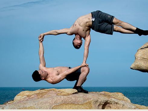 Vẫn sử dụng kĩ thuật chống đầu giữ thăng bằng, nhưng lần này, Quốc Cơ - Quốc Nghiệp tăng độ khó của màn biểu diễn bằng việc nhảy qua các cây cột cao, có vị trí xa nhau.
