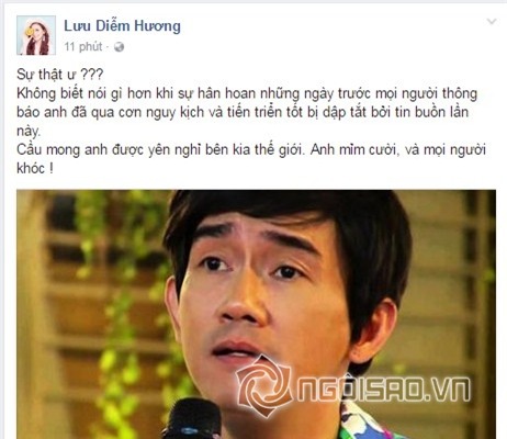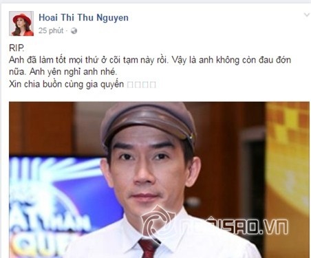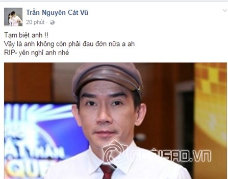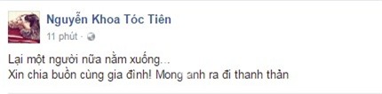 "Không biết nói gì hơn khi sự hân hoan những ngày trước mọi người thông báo anh đã qua cơn nguy kịch và tiến triển tốt bị dập tắt bởi tin buồn lần này. Cầu mong anh yên nghỉ bên kia thế giới. Anh mỉm cười và mọi người khóc.