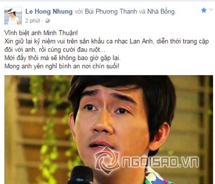 Diva Hồng Nhung chia sẻ: "Vĩnh biệt anh Minh Thuận! Xin giữ lại kỷ niệm vui trên sân khấu