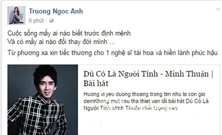 Trương Ngọc Ánh chia sẻ bài hát của Minh Thuận và chia sẻ: "Cuộc sống mấy ai nào biết