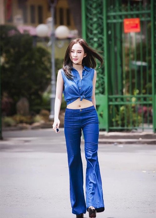 Angela Phương Trinh phối quần ống vẩy với áo hở eo