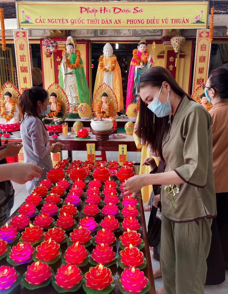 Ninh Dương Lan Ngọc còn chỉn chu hơn với bộ quần áo Phật tử.