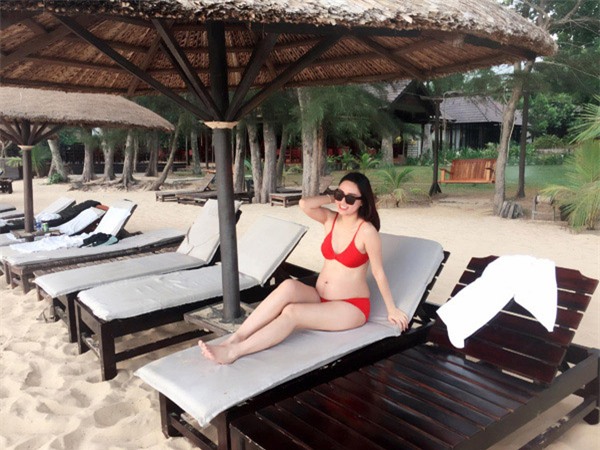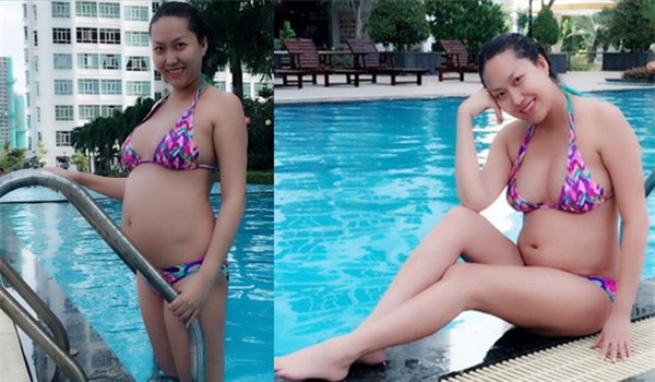 Nếu như những lần trước Hồng Quế lấp lửng ẩn hiện khoe bụng bầu sau lớp vải váy áo thì lần này cô nàng lại "chiêu đãi" người nhìn với khoảnh khắc lột bỏ xiêm y diện bikini tự tin khoe vòng 2 tròn vo lớn trông thấy của mình.