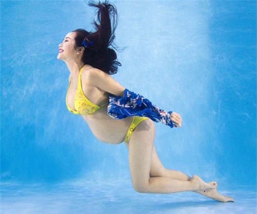 dưới bể bơi. Ở một khoảnh khắc khác, bà bầu cũng khiến những người yêu