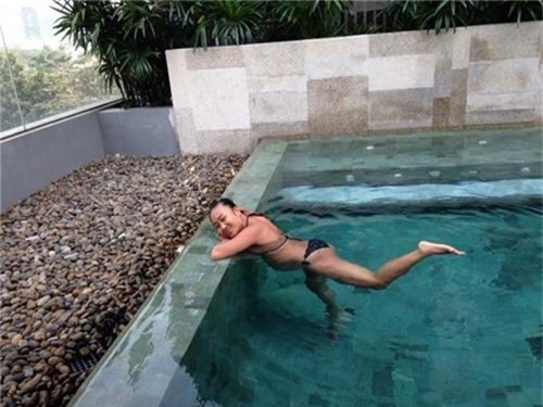 giãn dưới bể bơi. Theo tiết lộ của Hồng Quế thì cô đang có kỳ nghỉ vui