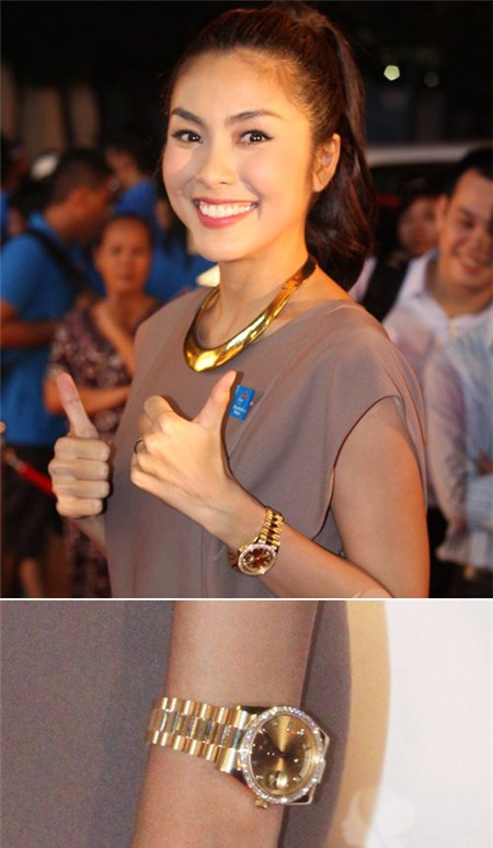 Còn nhớ, sau đám cưới “bùng nổ showbiz” ít lâu, Tăng Thanh Hà lại khiến truyền thông chú ý khi xuất hiện tại một sự kiện với chiếc đồng hồ vàng lấp lánh trên tay. Theo nhiều nguồn tin, chiếc đồng hồ này có giá hơn 1 tỷ và là quà của bố chồng Tăng Thanh Hà tặng cho cô. Ngoài Tăng Thanh Hà, Mai Phương Thúy cũng từng gây xôn xao khi xuất hiện tại một sự kiện với chiếc đồng hồ Rolex trị giá hơn 1 tỷ.