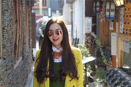 Tuyết Lan trong những ngày về Việt Nam với street style đầy ấn tượng cùng mắt kính.