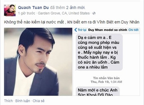 Quách Tuấn Du gửi lời tiếc thương đến Duy Nhân