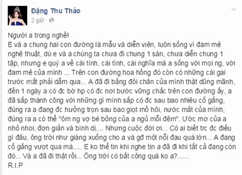 Hoa hậu Đại dương Đặng Thu Thảo cũng có đôi dòng tâm sự trên trang cá nhân
