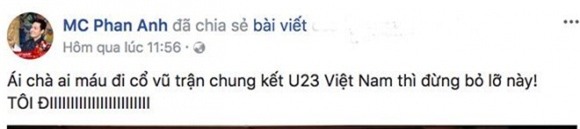 MC Phan Anh xác nhận sẽ có mặt ở Trung Quốc để cổ vũ cho đội tuyển U23 Việt Nam