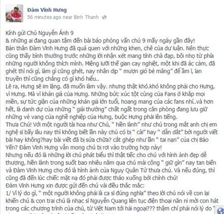 Sự kiện Đàm Vĩnh Hưng phản ứng với nhạc sĩ Nguyễn Ánh 9 là minh chứng mới nhất cho việc nghệ sĩ Việt bị mất đi cảm tình vì phát ngôn vạ miệng và thiếu suy nghĩ. Chỉ qua những lời nhận xét của nhạc sĩ về khả năng ca hát của anh, anh đã "nổi cơn thịnh nộ" và lên trang cá nhân viết tâm thư ám chỉ nhạc sĩ đáng tuổi cha chú mình là "ngụy quân tử", là "hai mặt".