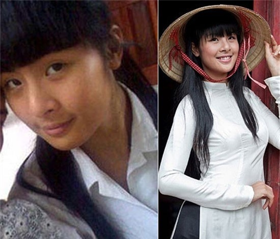Angela Phương Trinh đã từng đen nhẻm và không mấy nổi bật nhưng sau nhiều năm, cô đã trở thành biểu tượng gợi cảm của phái đẹp. Được biết, việc sửa sang mũi và làn da trắng đã giúp dung nhan cô sang chảnh vượt bậc.