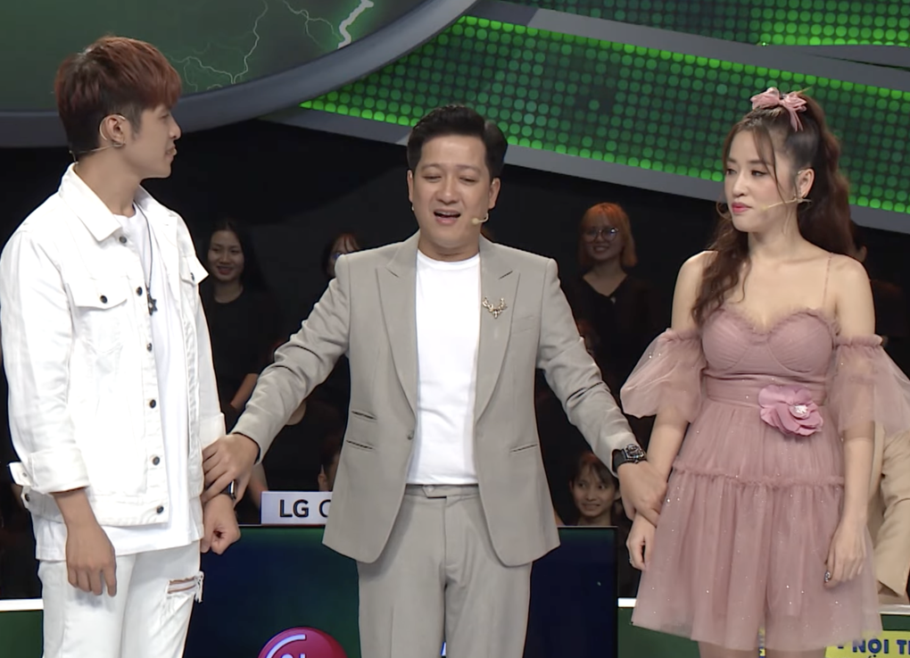 Nghi vấn hẹn hò của Puka và Gin Tuấn Kiệt nhiều lần được Trường Giang, Trấn Thành cùng một số đồng nghiệp trêu ghẹo trên sóng truyền hình. Thậm chí, cách đây không lâu ông xã Nhã Phương còn "hớ miệng" để lộ chuyện làm đám cưới của đàn em trong buổi khai trương quán ăn của mình (Ảnh: Chụp màn hình).