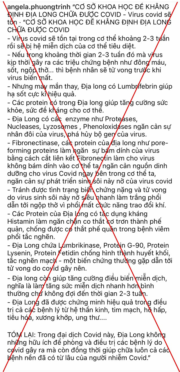 Trước Angela Phương Trinh, đã từng có người bị phạt khi có phát ngôn về việc Địa long chữa trị được Covid-19