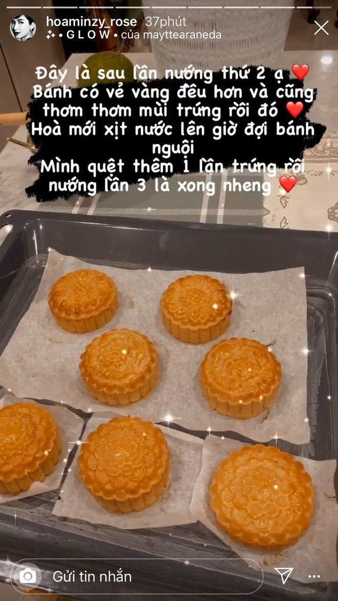 Hết bánh bao, bánh bông lan thì mới đây, Hoà Minzy còn thử sức với bánh trung thu nhân dịp Tết trung thu sắp đến. Phải công nhận một điều rằng, thành phẩm nướng bánh của Hoà Minzy trông vô cùng hấp dẫn: màu sắc bắt mắt, không bị quá lửa, rất vừa ăn. Đến bạn trai thiếu gia Minh Hải cũng phải khoe trên Facebook ảnh "tự sướng" cùng chiếc bánh mới ra lò. Anh lém lỉnh cho biết bài đăng này trị giá 100 triệu, đã ghi nợ cho Hoà Minzy và nhắc cô sớm chuyển khoản.