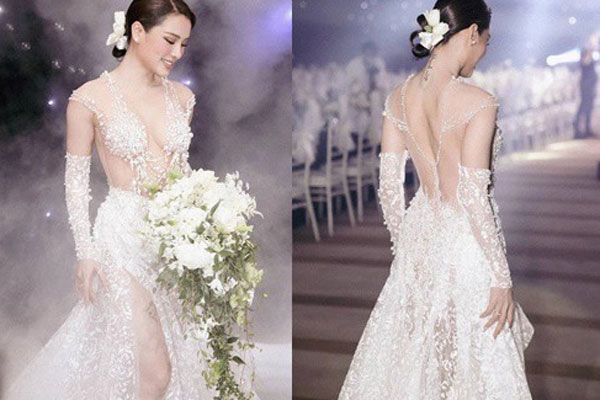 Trong đám cưới, Phương Trinh Jolie diện 3 chiếc váy cưới sang chảnh và sexy vô cùng quyến rũ. Còn chú rể Lý Bình cũng không hề kém cạnh với ngoại hình phong độ.