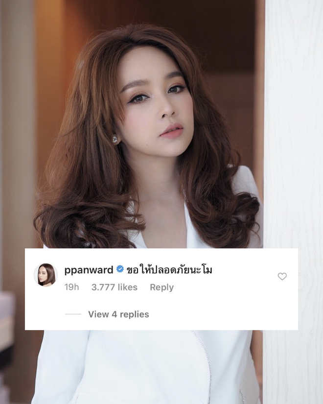 Nữ hoàng giải trí Thái Lan bày tỏ sự lo lắng tột cùng. Trong bài đăng cuối cùng của Tangmo, Chompoo để lại dòng nhắn: "Mong rằng em vẫn an toàn. Gửi tới em lời nguyện cầu của chị".