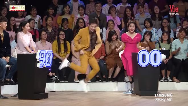 Nói rồi, Thanh Duy chạy ra bắt chước lại động tác vũ đạo kỳ quặc của Cẩm Ly, khiến ai cũng bật cười, còn Cẩm Ly thì ngượng chín mặt.