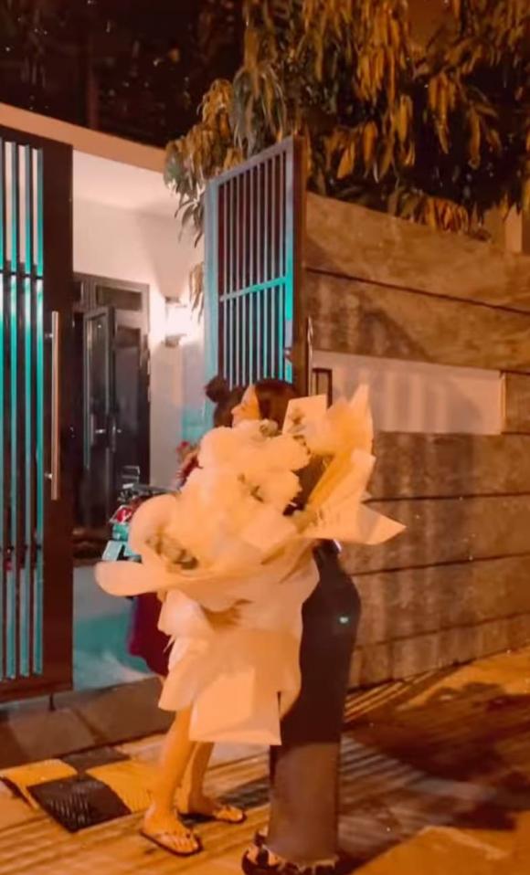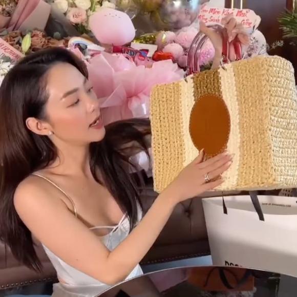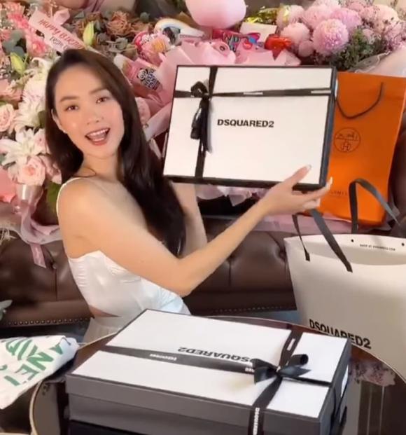 Khung cảnh phía sau lưng Minh Hằng toàn hoa và ngập tràn đồ hiệu khiến ai nấy vừa ngưỡng mộ vừa ghen tị. Nữ ca sĩ chia sẻ, Hoàng Thùy Linh là người tặng quà sinh nhật sớm nhất cho cô. Vào 10 giờ tối ngày 21/6, đàn em đã đến trước cửa nhà cô với màn nhảy múa cực yêu kèm món quà sinh nhật xịn xò làm cô vui không tả nổi. Giọng ca See tình tặng người chị thân thiết của mình đôi bông tai sang chảnh đến từ nhà mốt Dior.