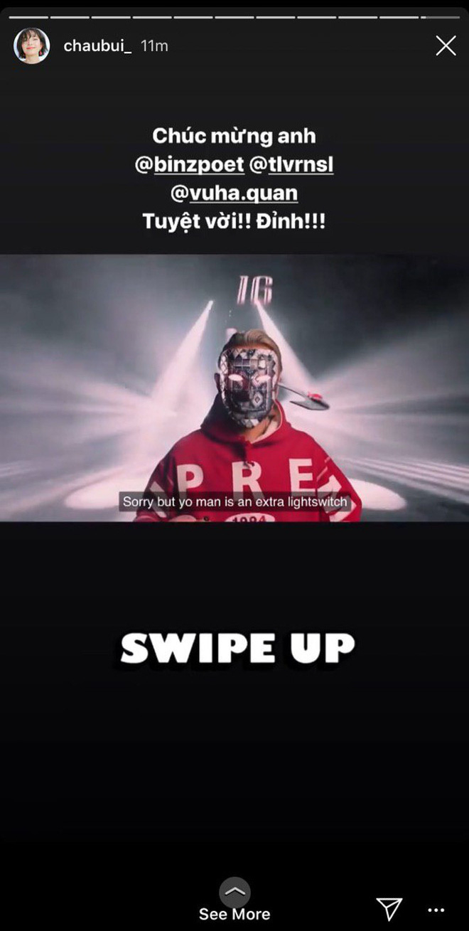 Ngoài ra Châu Bùi có follow Binz trên Instagram và đã like post gần đây của anh chàng trong khi Binz không hề follow bất kì ai.