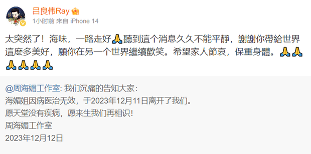 Lữ Lương Vỹ là 1 trong những đồng nghiệp đầu tiên đăng bài tiếc thương Châu Hải My