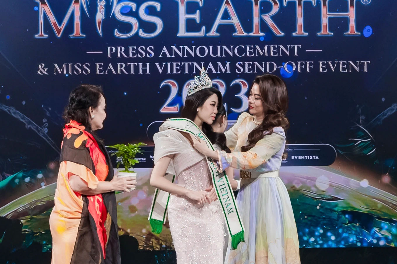 Ngày 16/10, bà Lorraine Schuck - Phó Chủ tịch Miss Earth - và bà Trương Ngọc Ánh - Chủ tịch Miss Earth Vietnam - đã cùng trao sash (băng đeo) cho tân Miss Earth Vietnam tham dự Miss Earth 2023.
