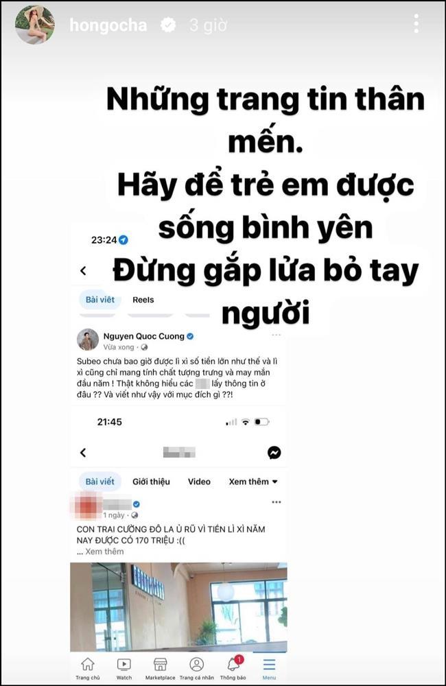 Theo đó, loạt bài đăng lan truyền câu chuyện lì xì đầu năm của Subeo: "Con trai Cường Đô La ủ rũ vì tiền lì xì năm nay được có 170 triệu. Trong khi năm ngoái cậu bé được tận 250 triệu. Đúng là một năm kinh tế buồn".