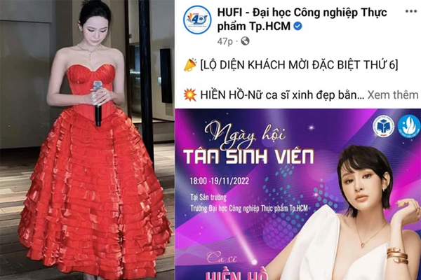 Trao đổi với Zing, đại diện của Đại học Công nghiệp Thực phẩm TP.HCM cho biết ban đầu, ca sĩ Hiền Hồ được nhà trường mời về biểu diễn trong sự kiện Ngày hội tân sinh viên diễn ra vào tối 19/11.