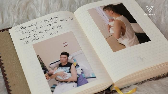 Sự “cuồng con” của ông bố bỉm sữa Đàm Vĩnh Hưng còn thể hiện ở chỗ, anh lưu lại kỷ niệm với bé bằng cách rất thủ công khi viết tay từng dòng nhật ký, chụp hình con và phân loại từng giai đoạn, rồi chọn lựa in hình ra dán vào cuốn sổ theo từng dòng cảm xúc của chính mình.