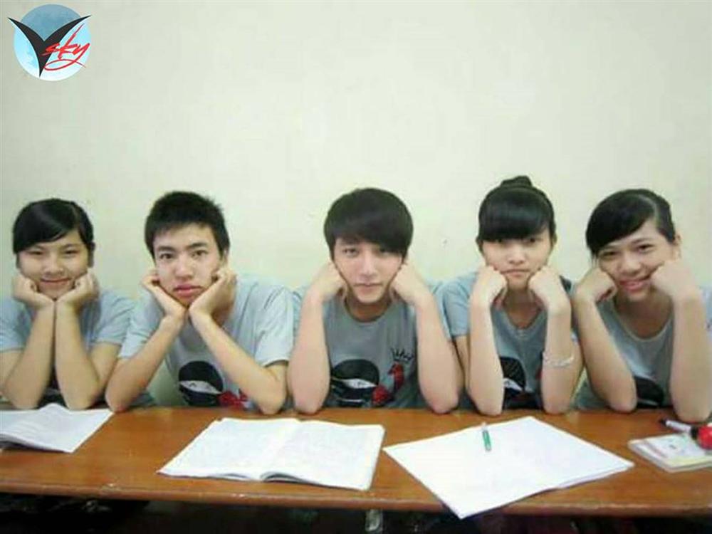 "Sếp Sky" hào hứng chụp ảnh cùng các bạn nam trong lớp.