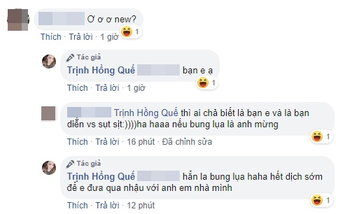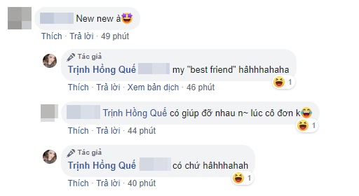 Đáng chú ý, dưới phần bình luận, rất nhiều bạn bè hỏi thăm Hồng Quế rằng đây có phải là "tình yêu mới" của cô hay không. Đáp lại, Hồng Quế cũng ẩn ý gọi Huỳnh Anh là "best friend" (bạn thân) nhưng lại "giúp đỡ nhau những lúc cô đơn". Không những vậy, Hồng Quế còn thoải mái hẹn với bạn bè sau khi hết dịch sẽ đưa Huỳnh Anh qua nhậu cùng.
