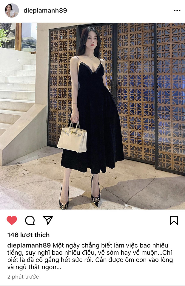 Tối 21/1, Diệp Lâm Anh đã chia sẻ bài viết trên Instagram cá nhân khiến cư dân mạng xôn xao. Người đẹp đăng tải hình ảnh khoe visual "đỉnh của chóp" và vóc dáng chuẩn chỉnh. "Một ngày chẳng biết làm việc bao nhiêu tiếng, suy nghĩ bao nhiêu điều, về sớm hay về muộn. Chỉ biết là đã cố gắng hết sức rồi, cần được ôm con vào lòng và ngủ thật ngon", Diệp Lâm Anh chia sẻ.