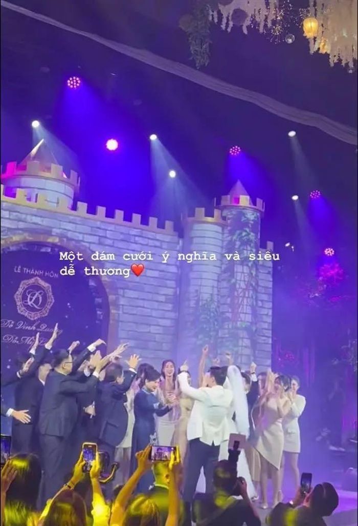 Như nhiều đám cưới của các sao showbiz khác, sau phần lễ long trọng, cặp đôi cô dâu chú rể cùng bạn bè thân thiết đã có những giây phút quẩy “cực sung” trong nền nhạc hai bài Tình Đã Đầy Một Tim - Lưu Số Em Đi.