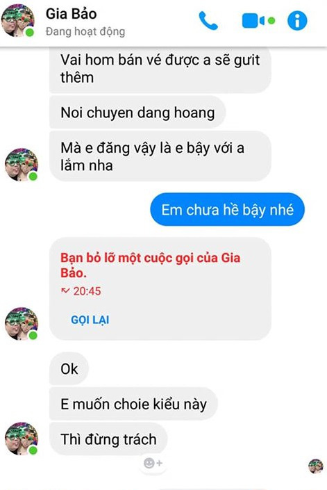 Trong đoạn tin nhắn có thể thấy, Gia Bảo liên tục dùng thái độ thiếu hòa nhã khi nói chuyện với người này.