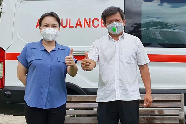 Sau 5 tháng, NS Việt Hương đã đích thân trao xe cứu thương cho ông Đoàn Ngọc Hải vào trưa ngày 2/8