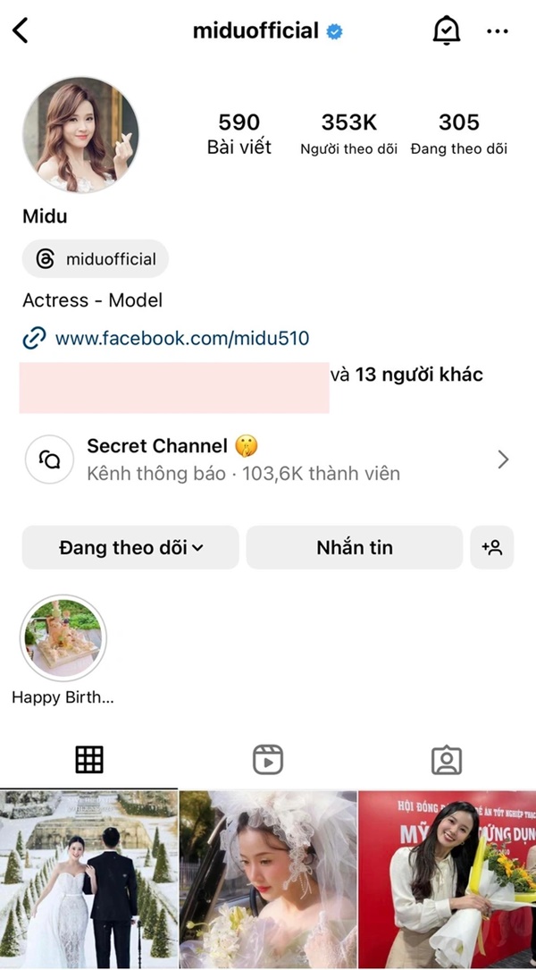 Thời điểm mới công bố ảnh cưới, Midu có 365 nghìn người theo dõi nhưng hiện tại chỉ còn 353 nghìn người