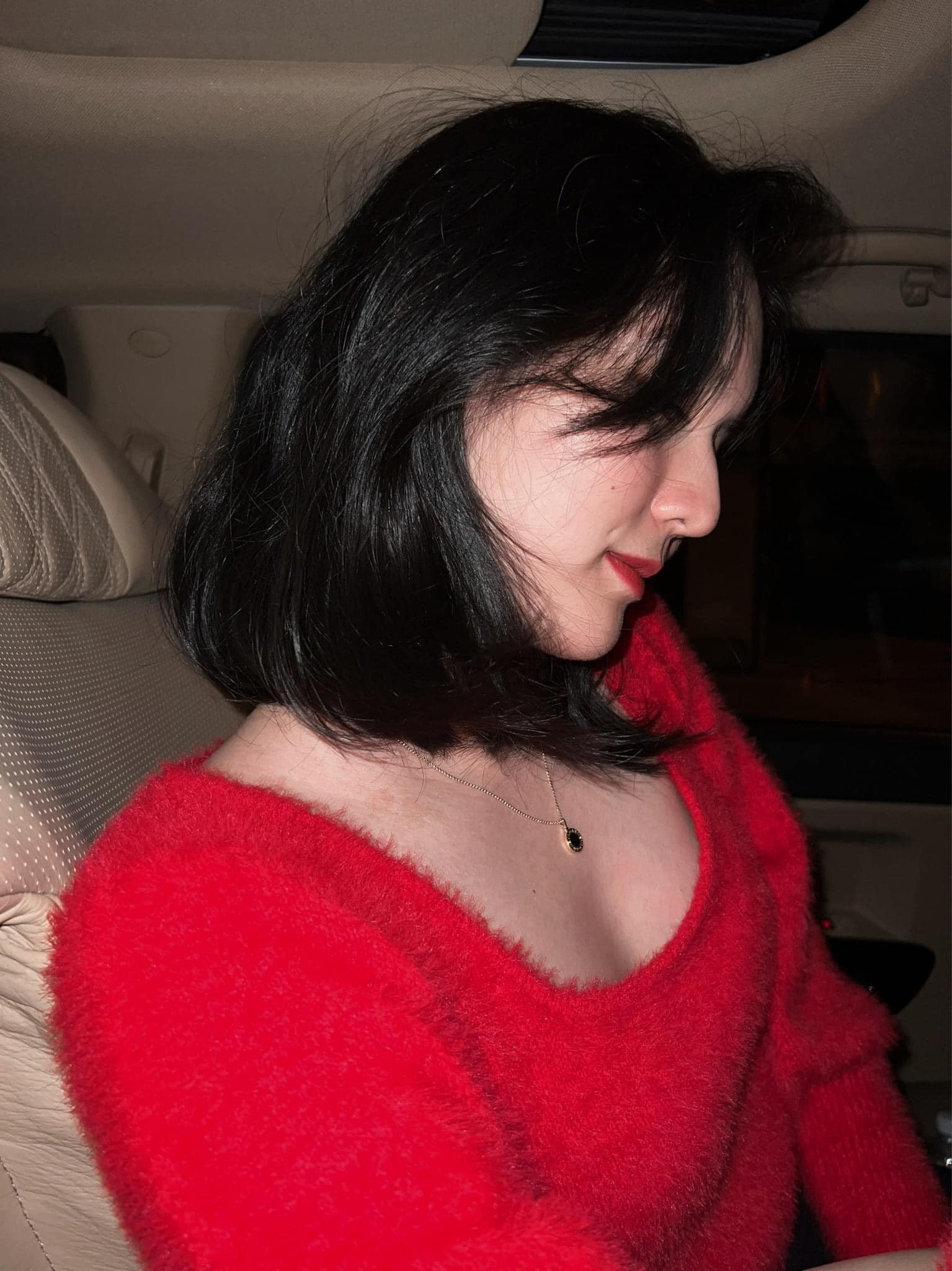 Nữ diễn viên trang điểm nhẹ, tóc buông lơi, màu son tệp với màu áo len lông đỏ. Đáng chú ý, nội thất chiếc xe 'nàng thơ' chụp khá giống với một lần nam ca sĩ Sơn Tùng M-TP khoe trên trang cá nhân. Dù cặp đôi chưa từng thừa nhận mối quan hệ nhưng loạt bằng chứng không thể chối cãi chứng tỏ cả 2 đang sống chung và sử dụng chung từ xe cộ cho đến quần áo.