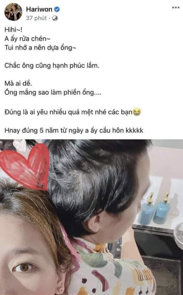 Khi chụp hình với chồng, Hari Won cũng chỉ chụp nửa mặt và nói về hạnh phúc