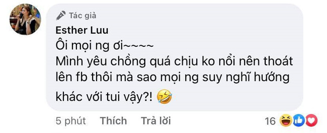 Gặp phản ứng "khó đỡ" của hội bạn nghệ sĩ, Hari Won đã phải vội vàng giải thích: "Ôi mọi người ơi... Mình yêu chồng quá chịu không nổi nên thoát lên Facebook thôi mà sao mọi người suy nghĩ khác với hướng tôi vậy".