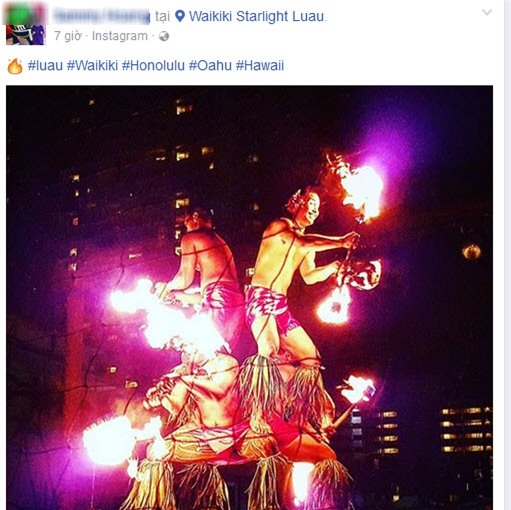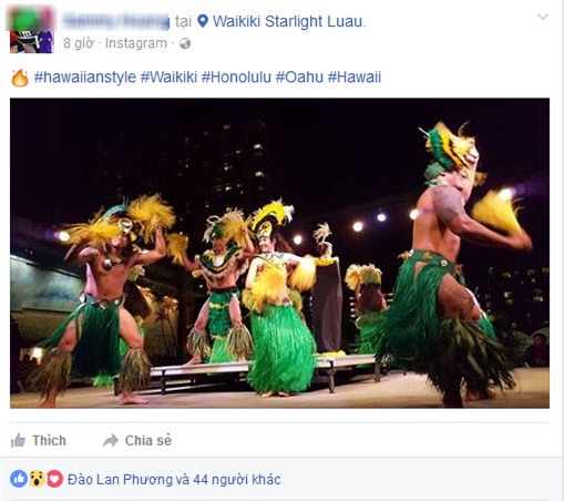 Trên Facebook cá nhân, con dâu tỷ phú Hoàng Kiều đăng ảnh xinh tươi và mỉm cười trong chiếc váy đen, khoe vòng eo nhỏ nhắn và làn da trắng, còn Sammy Hoàng liên tục cập nhật ảnh bãi biển tuyệt đẹp cùng tiết mục nhảy múa của người dân bản địa.