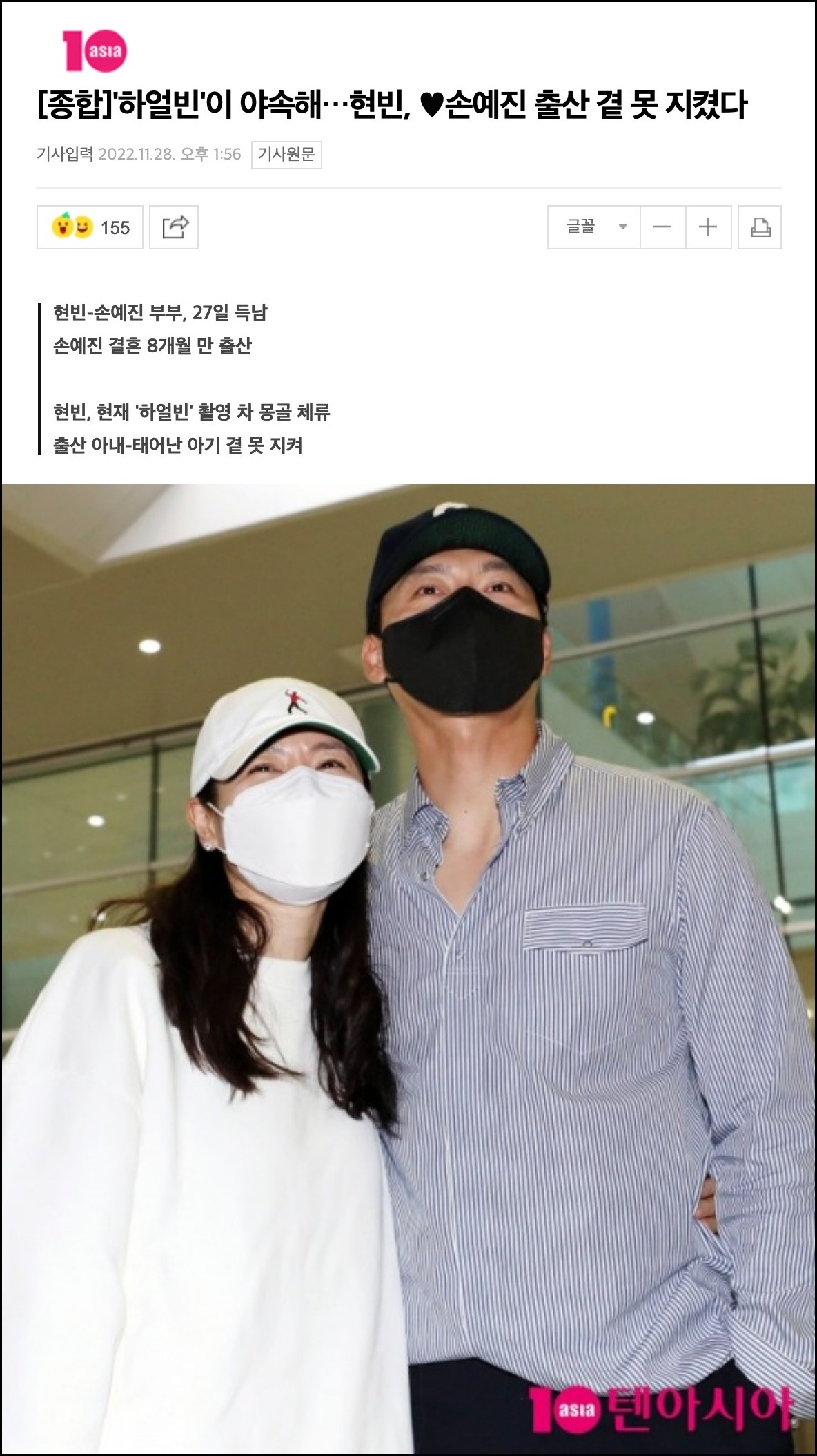 Chiều tối ngày 27/11, báo chí Hàn Quốc rầm rộ đưa tin Son Ye Jin đã hạ sinh cậu con trai đầu lòng. Ngay sau đó, công ty quản lý của nữ diễn viên - MS Team Entertainment - cũng xác nhận thông tin này và cho biết thêm sức khỏe của 2 mẹ con đã ổn định. Ngôi sao phim Thirty Nine hiện đang nghỉ ngơi tại một bệnh viện cao cấp ở Seoul.