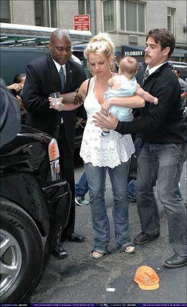 Hình ảnh Britney rời khỏi khách sạn và đang rất hoảng loạn khi bế bé Sean, dù đã được 2 vệ sĩ bảo vệ kĩ càng nhưng vẫn không thể thoát khỏi sự truy đuổi của 321 tay paparazzi