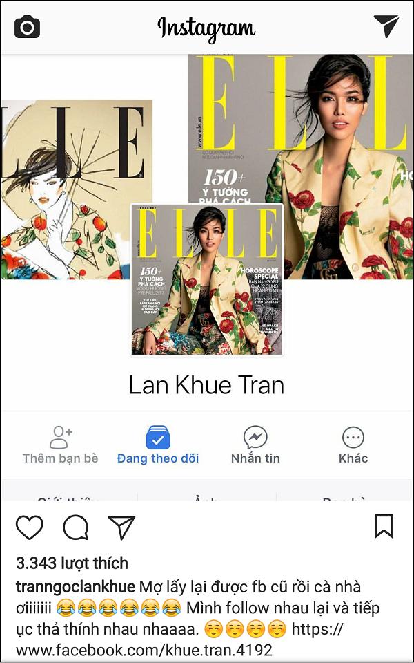 Tưởng chừng phải chia tay trang cá nhân với hơn 900.000 follower, nhưng mới đây, Lan Khuê bất ngờ thông báo lấy lại được tài khoản này thông qua sự hỗ trợ của ê-kip và đội ngũ Facebook.