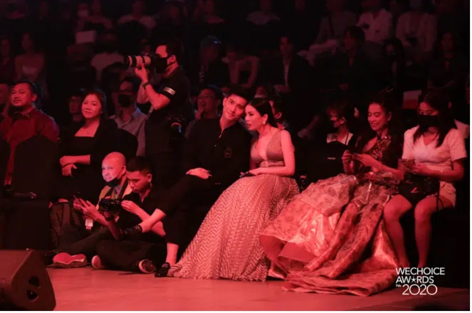 Khi bước vào khu vực diễn ra đêm gala, Lệ Quyên và Lâm Bảo Châu chọn ngồi cạnh nhau ở hàng khách mời Vip.