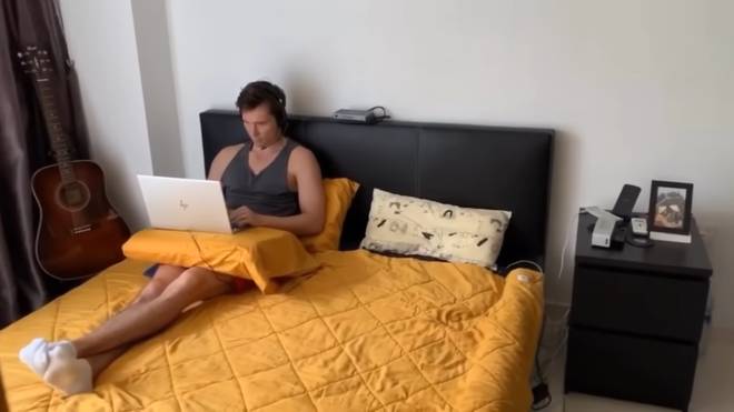 Đêm đến, Hoàng Oanh cùng chồng cùng nhau xem phim tại nhà. Chồng cô đầu tư hẳn một chiếc máy chiếu để hai vợ chồng không phải ra rạp.