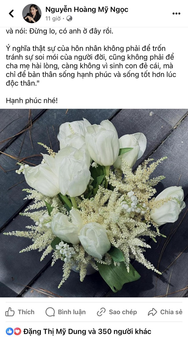 Đến sáng 9/5, Midu bị soi có động thái đầu tiên sau 2 ngày tổ chức tiệc. Theo đó, nữ diễn viên đã tương tác trong bài đăng hé lộ hoa cưới và chúc mừng của bạn thân Hoàng Mỹ Ngọc. Đồng thời, Midu cũng thả "Haha" khi Mai Phương Thúy khoe bức ảnh check in tại khu resort diễn ra đám cưới.