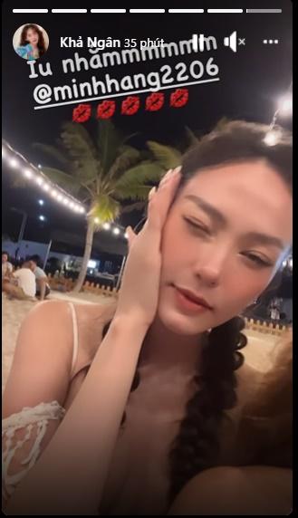 Trong khi đó, Khả Ngân cũng chia sẻ khoảnh khắc bên Minh Hằng, tiết lộ đàn chị đã say nhẹ trong bữa tiệc hâm nóng đám cưới.