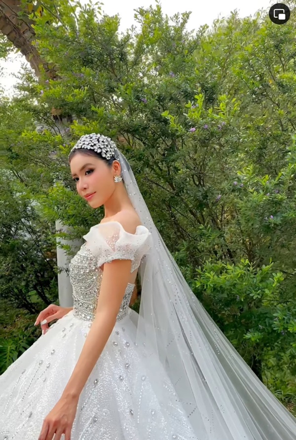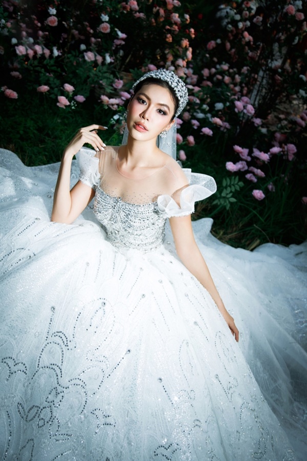 Minh Tú khoe nhan sắc rạng rỡ khi diện chiếc váy cưới lộng lẫy