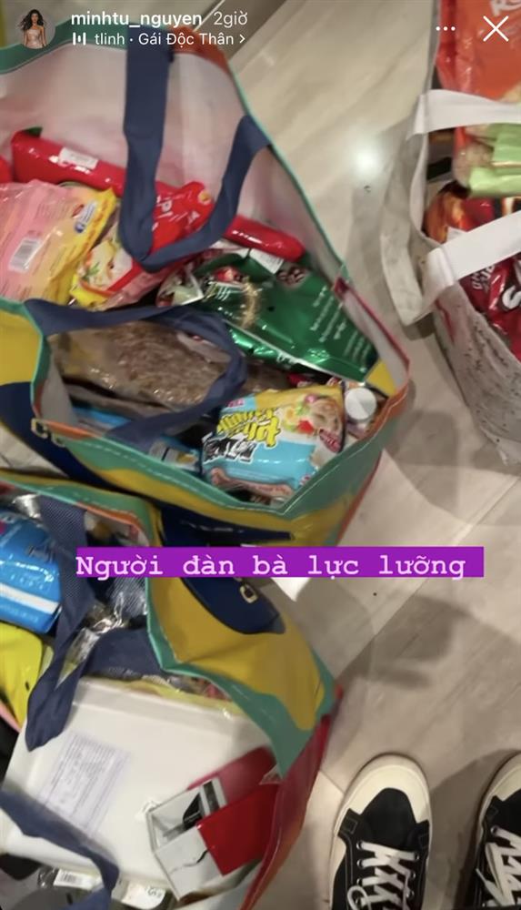 Minh Tú tự nhận mình là "người đàn bà lực lưỡng" khi tự đi "khuân" đủ thứ đồ ăn và đồ dùng ở siêu thị về