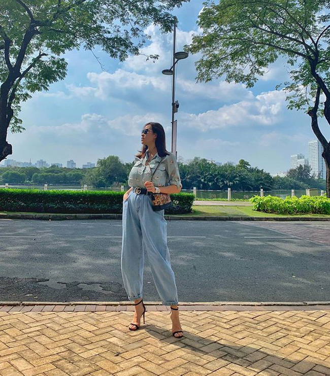 Chỉ 1 tuần sau đó, cô đã diện giày cao gót, quần jeans và sơ mi thời thượng dạo phố với body cực thon gọn - điều mà khó ai có thể ngờ. Được biết, cô hạ sinh con đầu lòng cho chồng Tây ngày 21/11 vừa rồi tại một bệnh viện quốc tế ở TP.HCM.